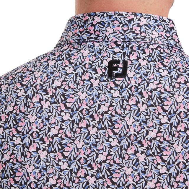 FJ. FootJoyn printtipikee Meadow Print Lisle Frisco mallistosta kaudelle 2026. Mallisto vangitsee Pohjois-Texasin nuorekkaan, modernin ja dynaamisen tyylin ammentaen inspiraationsa alueen eloisasta energiasta ja lennokkaasta ilmeestä. Väri black/violet/pink. FJ logo niskassa. Konepesu 30 asteessa samanväristen kanssa. Materiaali helppohoitoista, ei rypisty ja kuivaa nopeasti.