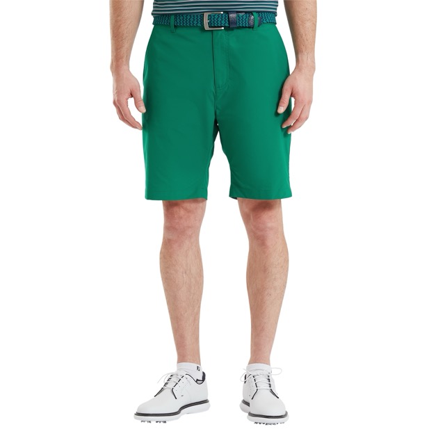 FootJoy. FJ Par Golf toiminnalliset shortsit. Kudottu Stretch Twill -kangas, mallina moderni kapeneva malli.  Kevyt kangas takaa hengittävyyden ja mukavuuden lämpimissä olosuhteissa. Vyötärönauhan sisällä oleva kuminen FJ-tarrain estää paitaa nousemasta ylös pelin aikana. Edessä ja takana taskut. FJ logo kankaan värillä oikeassa takataskussa. 100% polyesteriä. Väri vihreä. Konepesu 30 asteessa samanväristen kanssa. Tätä mallia on saatavissa vain rajattu erä.