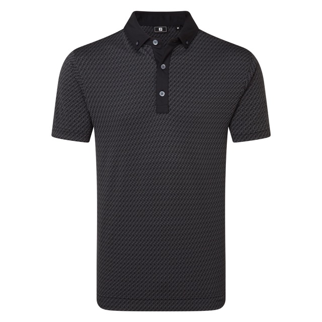 FJ. FootJoyn printtipikee Star Geo Jacquard Frisco mallistosta kaudelle 2026. Mallisto vangitsee Pohjois-Texasin nuorekkaan, modernin ja dynaamisen tyylin ammentaen inspiraationsa alueen eloisasta energiasta ja lennokkaasta ilmeestä. Väri black/ geometrinen printti grey. FJ logo niskassa, kauluksessa tyylikäs napitus. Konepesu 30 asteessa samanväristen kanssa. Materiaali helppohoitoista, ei rypisty ja kuivaa nopeasti.