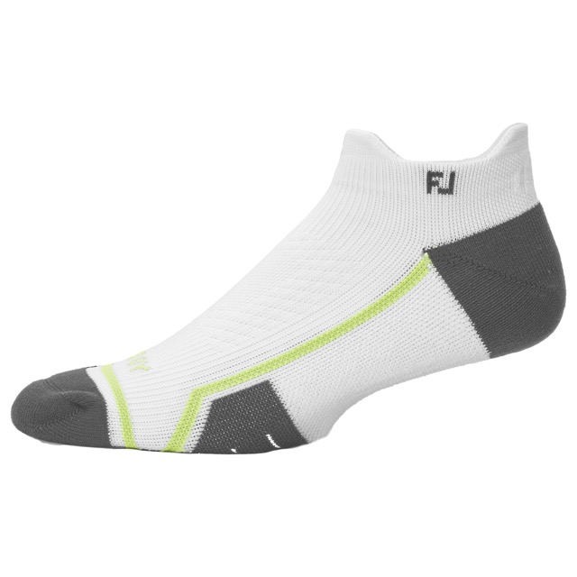 FJ. FootJoyn miesten mallistosta löytyy Tech D.R.Y malli mikä on valmistettu kestävästi , yli 50 % kierrätetyistä materiaaleista. Eristetty pehmustus lisää mukavuutta kantapäässä, varpaassa ja pohjassa. Dual tab -rakenne tarjoaa suojan ja erityisesti suunnitellun istuvuuden. Pysyy jalassa erityisen hyvin kävellessä. Materiaali kierrätetty polyesteri 64 %, spandex 17 %, nailon 10 %, polyesteri 9 %. Väri White ja Black. Yksi miesten koko, EUR 39-46.